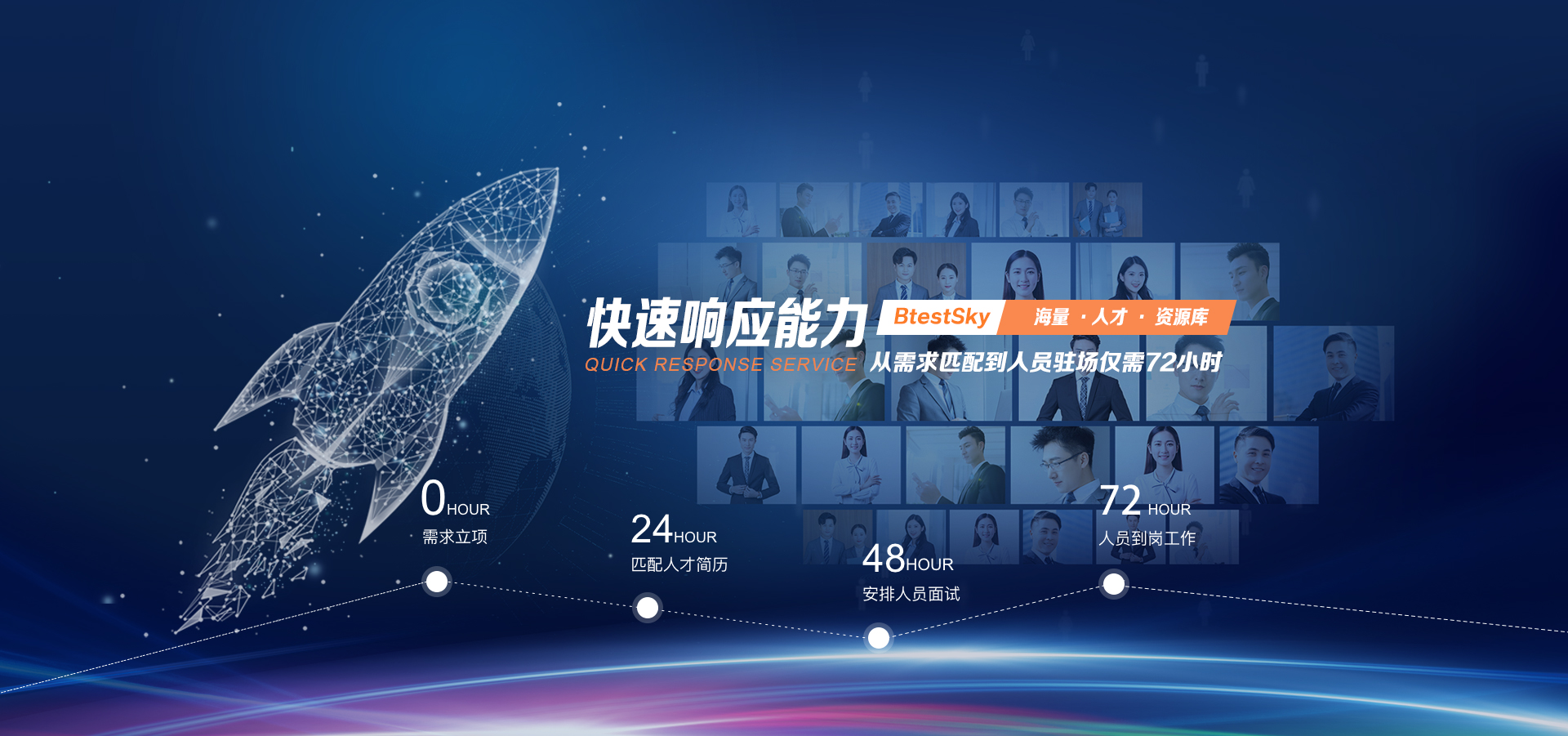 ? 招聘團(tuán)隊(duì)100人以上,24小時(shí)推薦簡(jiǎn)歷,36小時(shí)內(nèi)復(fù)試,72小時(shí)入職
